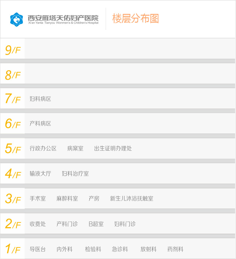 西安雁塔大爱妇产医院楼层分布